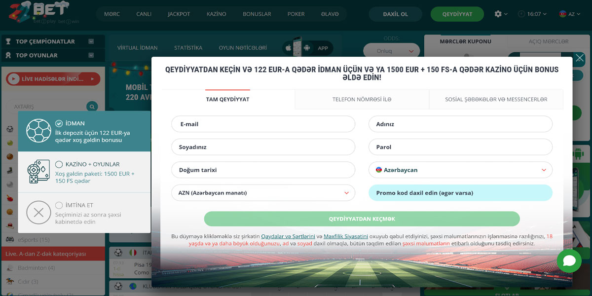 100%/₼2955 + 150 Pulsuz Fırlanma