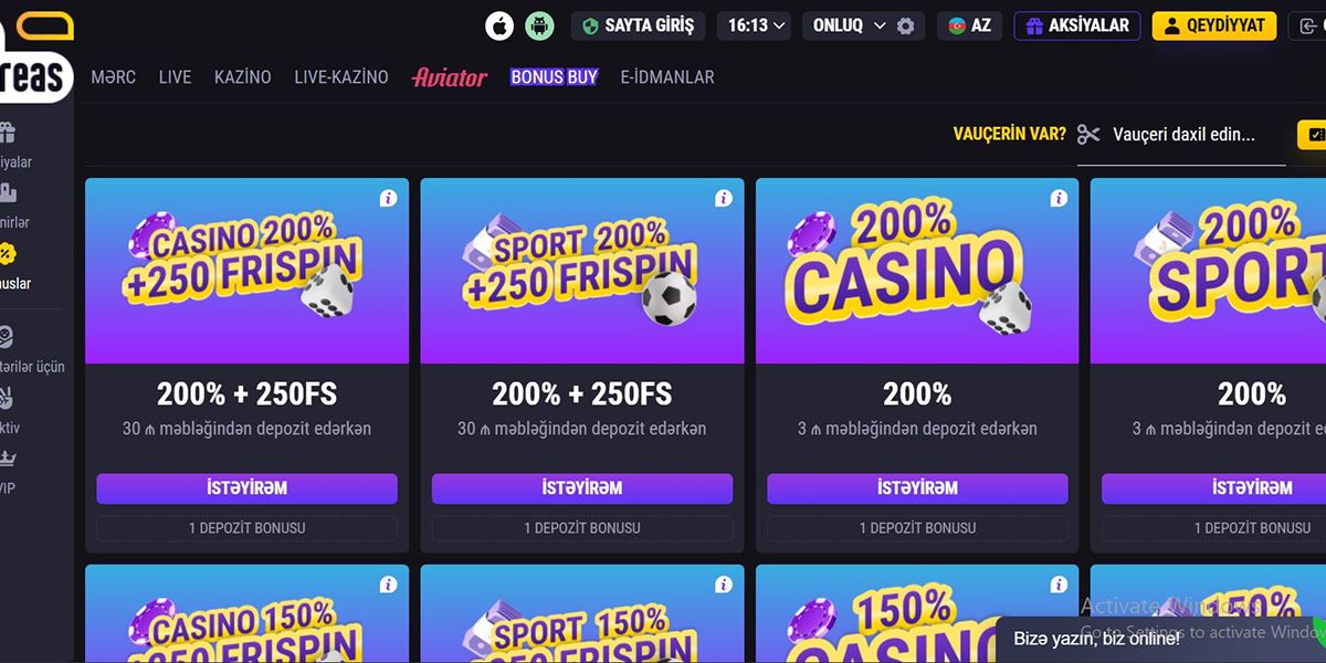 - ₼2 aşağı minimum depozit, təsadüfi Azərbaycanlı oyunçular üçün idealdır.